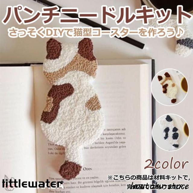 パンチニードル 材料道具キット 猫型 コースター材料キット ニードルパンチ 刺繍 手芸材料セット 刺繍枠 ニードルペン 図案 布セット 中級者向け 毛糸