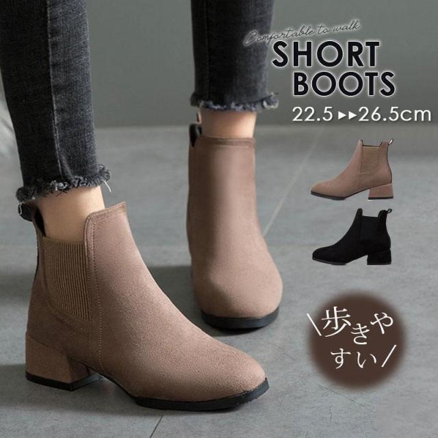ショートブーツ レディース 歩きやすい 疲れない ブーツ サイドゴア ブーツ スエード ローヒール サイドゴアブーツ 幅広 靴 ショート 大きいサイズ