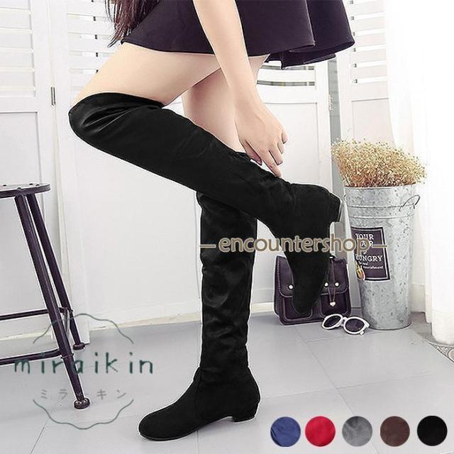 ニーハイブーツ ローヒール 安い ロングブーツ スエード調 大きいサイズ 美脚 走れる 歩きやすい 大きいサイズ 歩きやすい 痛くない 20代 30代 40代