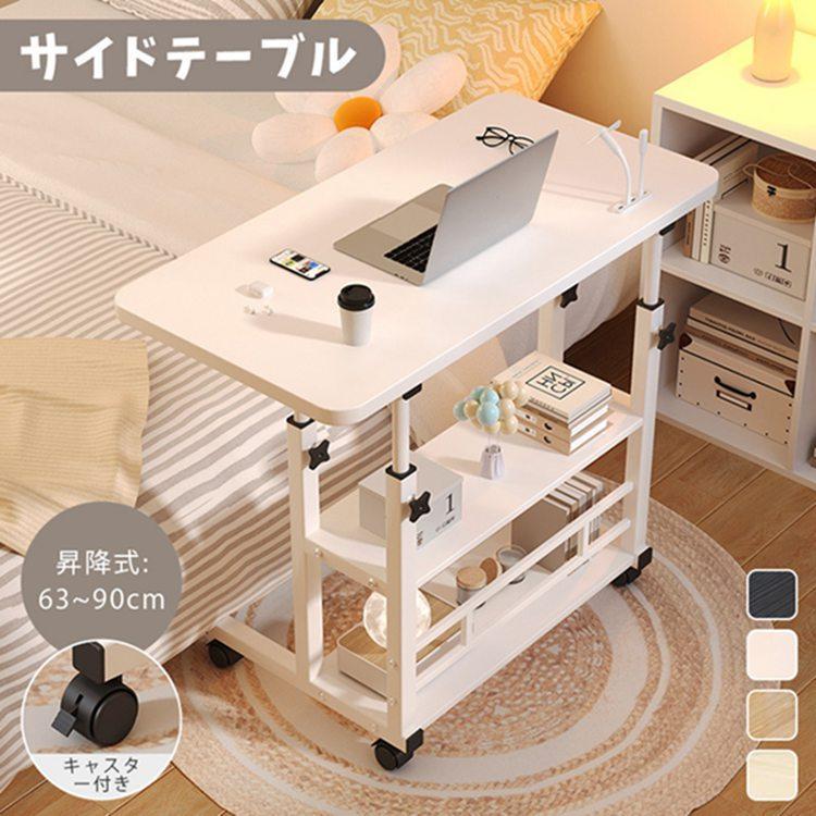 昇降式テーブル サイドテーブル 組み立て簡単 高さ調節 キャスター付き テーブル 可動式 机 ベッド用テーブル ベッドテーブル デスク パソコンデスク
