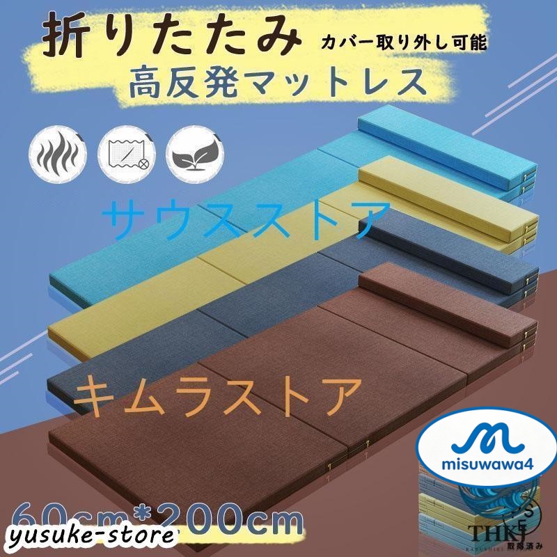 60cm 200cmマットレス 高反発ウレタン 枕付き 三つ折り シングル お昼寝マット 折りたたみ ごろ寝マット ベッドマットレス キャンプ