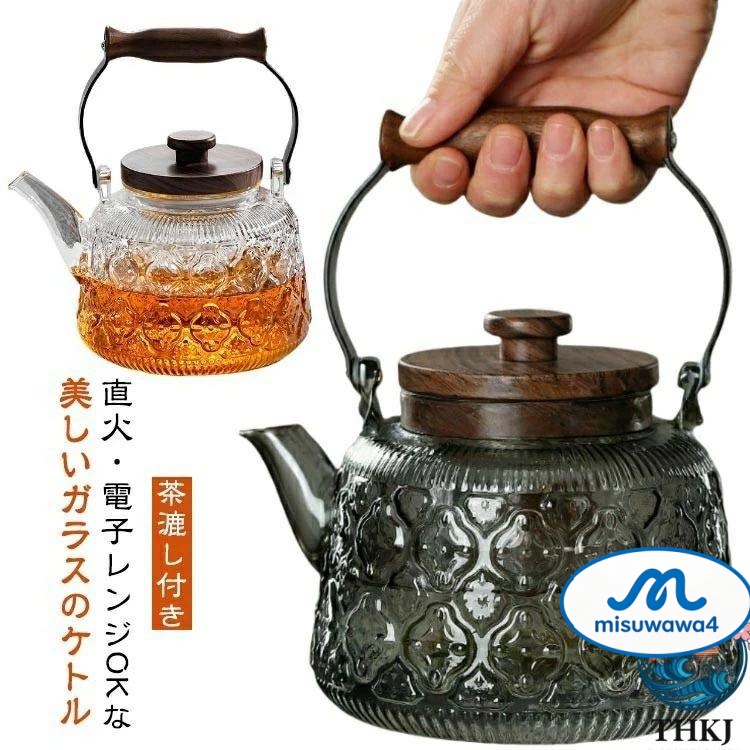 大容量 蓋付き 手作り 直火対応 ガラス 1000ml フルーツティー 湯沸かし 1リットル おしゃれ ガラスポット ガラスティーポット ティーポット