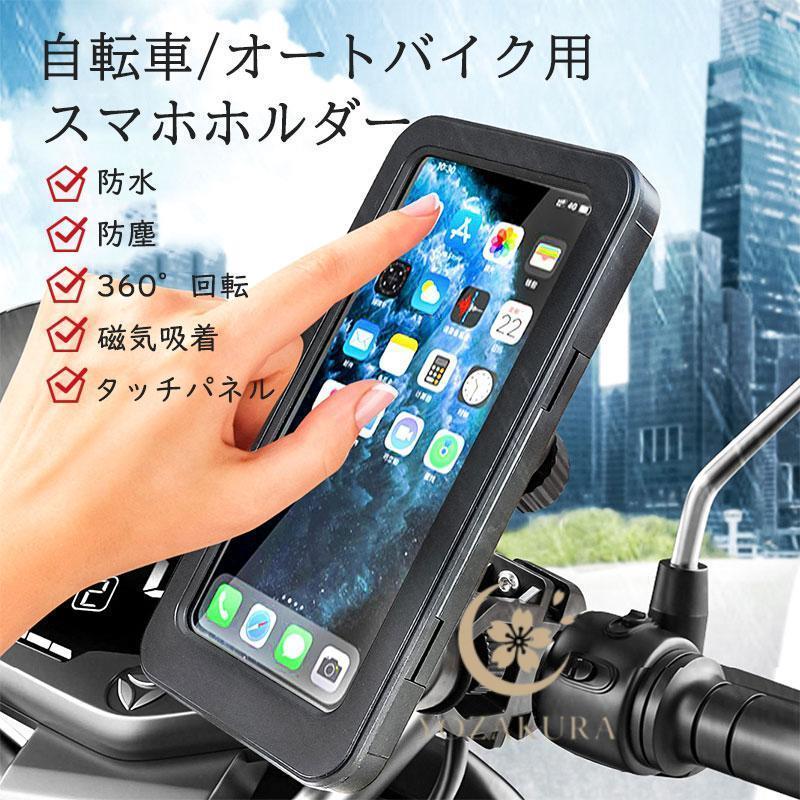 スマホホルダー バイク 自転車 車 防水 防塵 スマホスタンド タッチパネル ナビ 携帯ホルダー バックミラー式 便利 頑丈 縦置き 横置き 360°