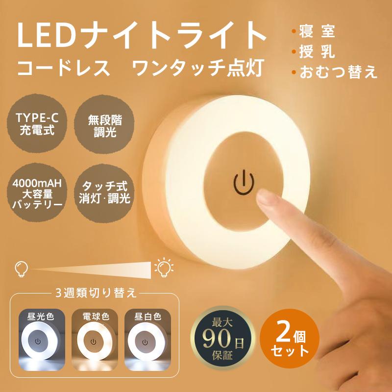 ナイトライト 授乳ライト 寝室 調光 2個 ベッドサイドランプ 間接照明 USB充電式 コードレス デスクライト LED 常夜灯 足元 玄関 トイレ