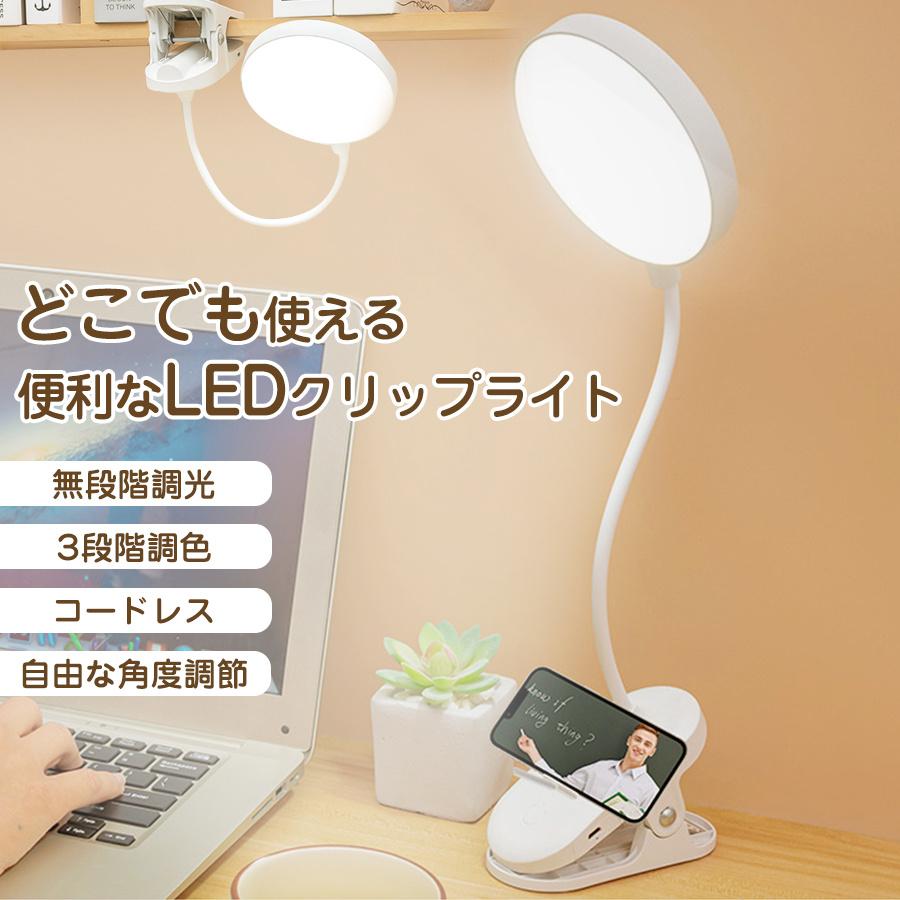 クリップライト led 調光 デスクライト クリップ式 卓上ライト USB充電式 明るさ調節 読書灯 子供 おしゃれ 角度自由 コードレス 勉強 寝室