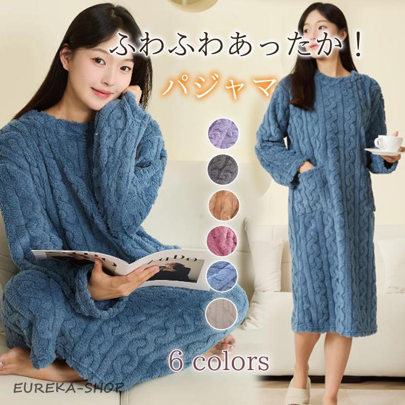 パジャマ レディース ワンピース ルームウェア 寝巻き 部屋着 長袖 厚手 もこもこ 可愛い 大きいサイズ 超人気 ふわふわ モコモコ ゆったり 長袖 冬物 暖かい