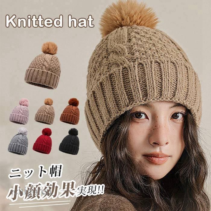 ニット帽 レディース 耳あて ポンポン付きビーニーハット ビーニー 大きいサイズ 男女兼用 防寒 ぼうし スノボ キャップ 秋冬 ふわふわ カジュアル ケーブル編み リブ編み 暖かい 可愛い 冬アイテム 防寒対策 小顔効果 大人 学生