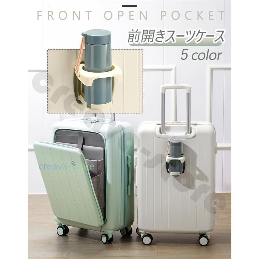 スーツケース フロントオープン型 ビジネス 男女兼用 キャリーケース 大容量 出張 機内持ち込み カップル ボトルホルダー ロック S/M/L