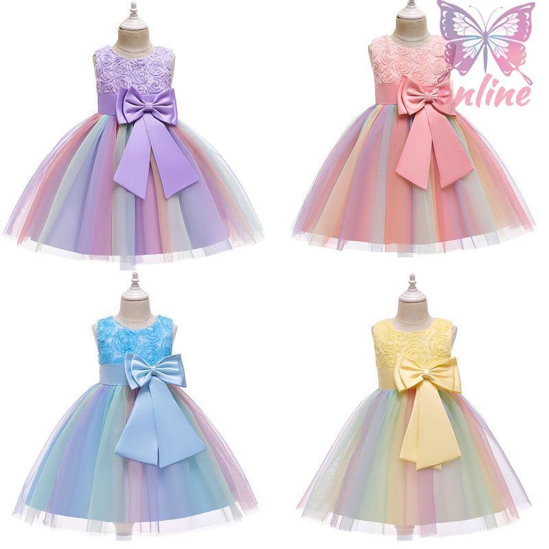 期間限定子供ドレス ふわふわ 可愛い虹色チュールドレス リボンドレス 子供 キッズ フォーマル 結婚式 発表会 演奏会 ワンピース パーティー フラワーガール