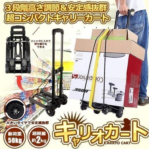 キャリーカート 折りたたみ 折り畳み 軽量 コンパクト 持ち運び 台車 カート キャリー 高さ調整 安定 耐荷重 50kg 4輪 買い物 アウトドア キャンプ スポーツ