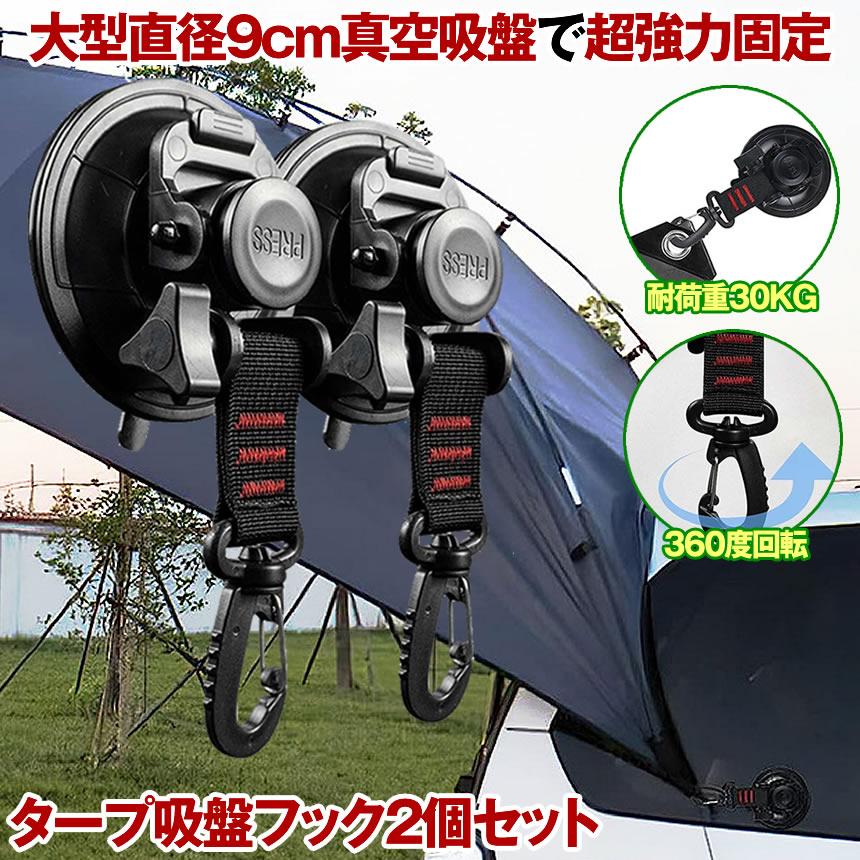 吸盤 フック 2個セット 直径 9cm 強力 カーサイドタープ 車 タープ サンシェード ベランダ 固定 カーサイドオーニング テント 自動車 荷物 固定 キャンプ用品