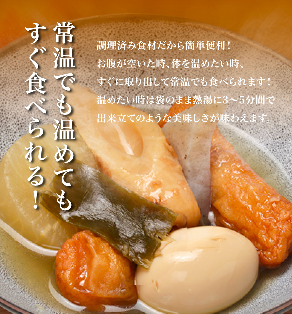 お腹が空いた時、体を温めたい時、すぐに取り出して常温でも食べられます!