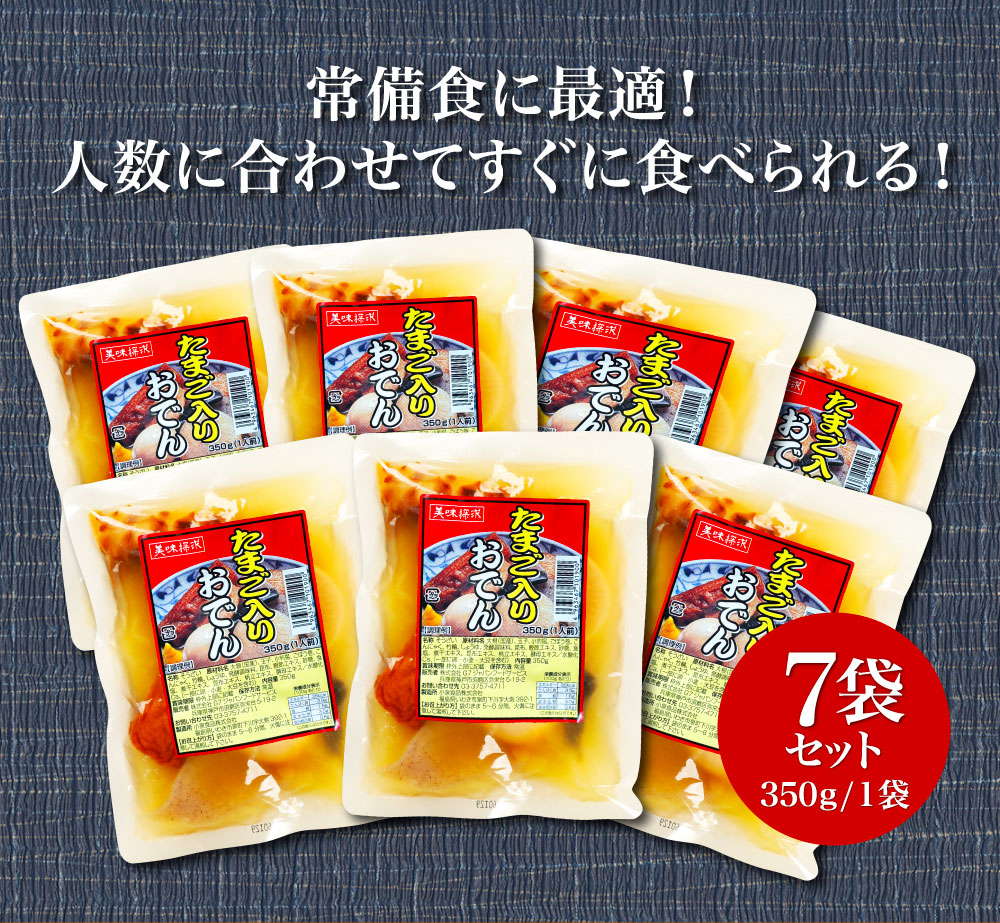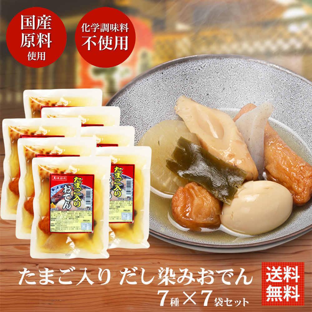 【クーポンで15%OFF】 おでん レトルト たまご入り だし染みおでん 7種 350g ×7袋 常温保存 レンジ対応 送料無料 おでんパック 化学調味料不使用 日持ち