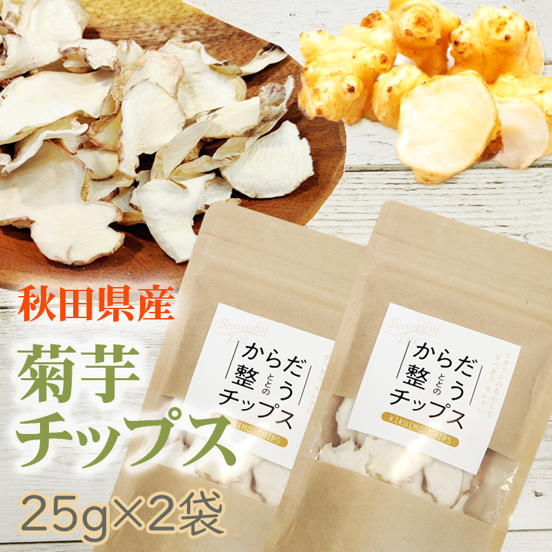 菊芋チップス 50g (25g×2袋) 秋田県産 きくいも 無添加 メール便 送料無料 YP [菊芋チップス2袋 BY3] 即送