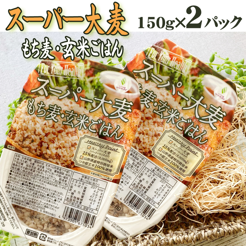 ライスパック つや姫 玄米 150g×2パック スーパー大麦 もち麦 スーパーフード レトルト 送料無料 メール便 [スーパー大麦パックライス×2 BM] NP 即送