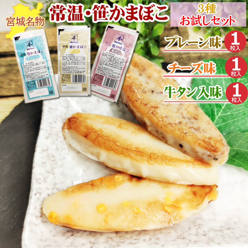 笹かまぼこ 3種3袋 プレーン32g×1袋 チーズ32g×1袋 牛タン入32g×1袋 常温 お試し 送料無料 メール便 NP [笹かまプレーン1チーズ1牛タン1 BS] 即送