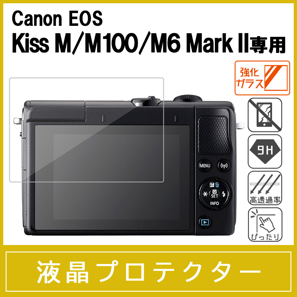 Canon EOS Kiss M / Kiss M2 / M100 / M6 Mark II 強化ガラス保護フィルム 液晶プロテクター 硬度9H 0.26mm厚ガラス ラウンドエッジ キャノン