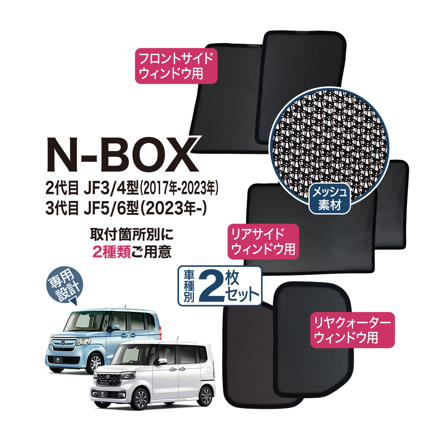 N-BOX 3代目 JF5 JF6 2代目 JF3 JF4 専用 メッシュシェード フロントサイド リヤクォーター ウインドウ 遮光 遮熱 マグネット サンシェード カーテン