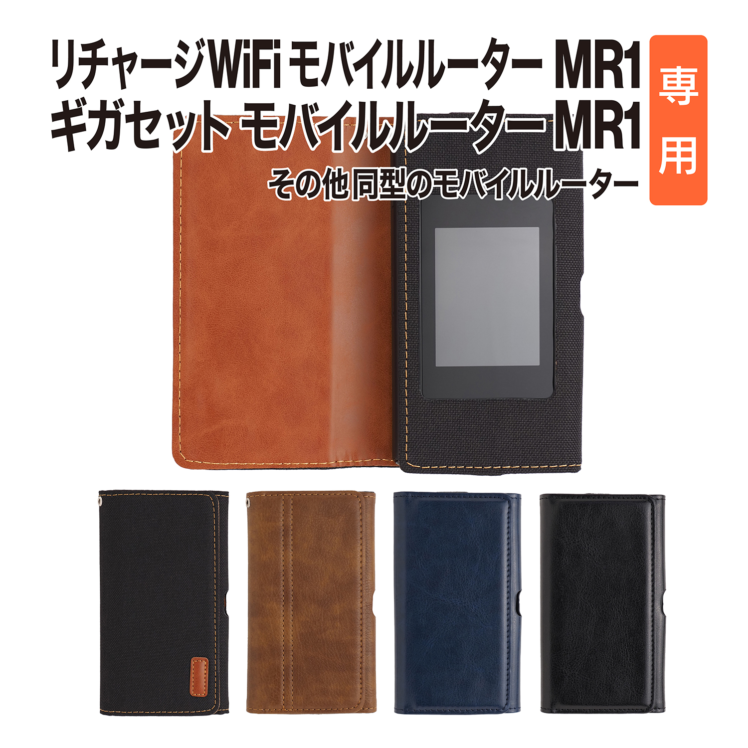 リチャージWiFi MR1専用の手帳型ケース 当店のディスプレイ用ガラスフィルムと併用でさらに安心