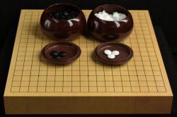 碁盤新かや20号卓上松印と新生碁石竹印とプラスチック碁笥の3点セット