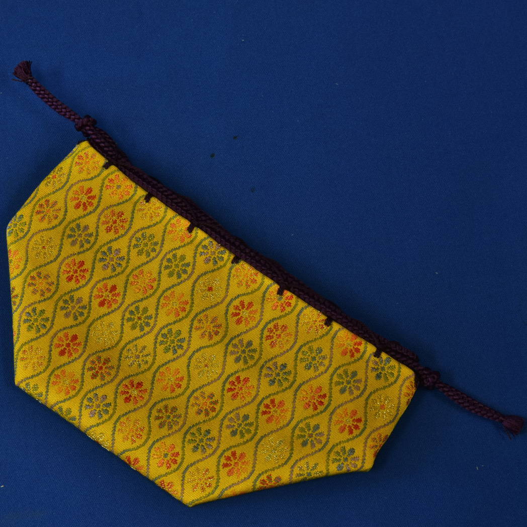 袋物専門作家の上品な駒袋。表地は西陣の正絹金襴、裏地も正絹、紐は腰の無いリリアン紐では無く、帯紐などと同じ正絹の組紐とこだわった逸品。
