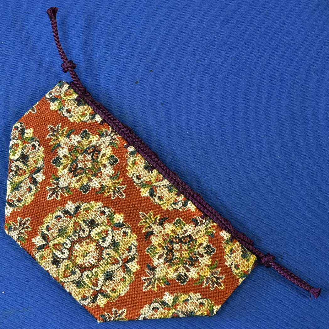 袋物専門作家の上品な駒袋。表地は西陣の正絹金襴、裏地も正絹、紐は腰の無いリリアン紐では無く、帯紐などと同じ正絹の組紐とこだわった逸品。