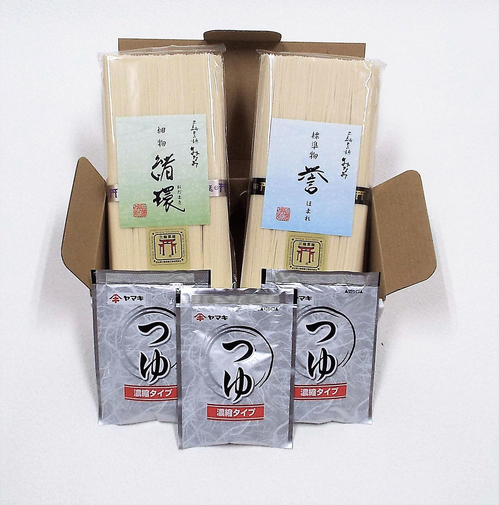 そうめん お楽し味セットC 緒環 5束・誉 5束 麺つゆセット 三輪素麺 段ボール箱