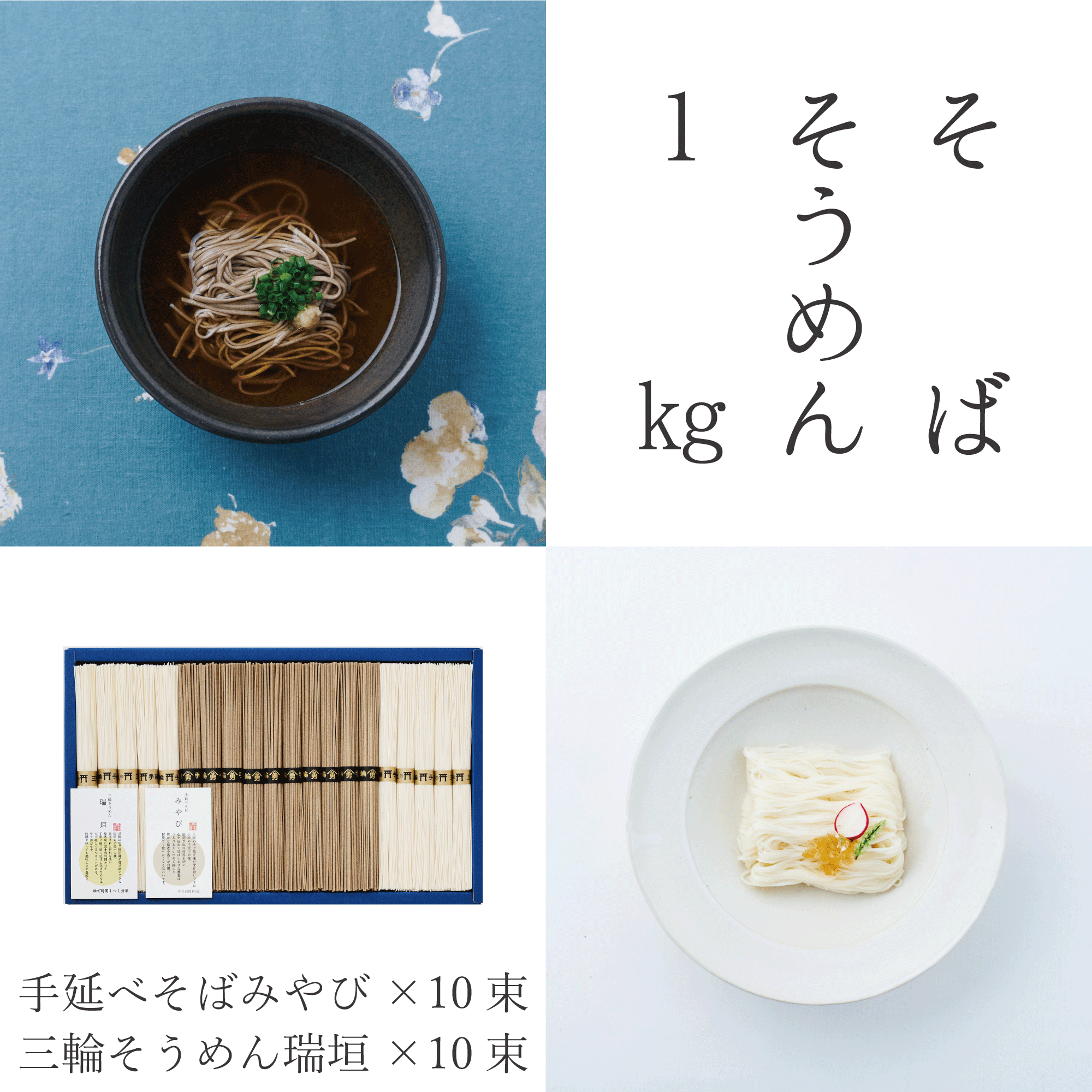 手延べそば「みやび」と三輪そうめん「瑞垣」の詰め合わせです。