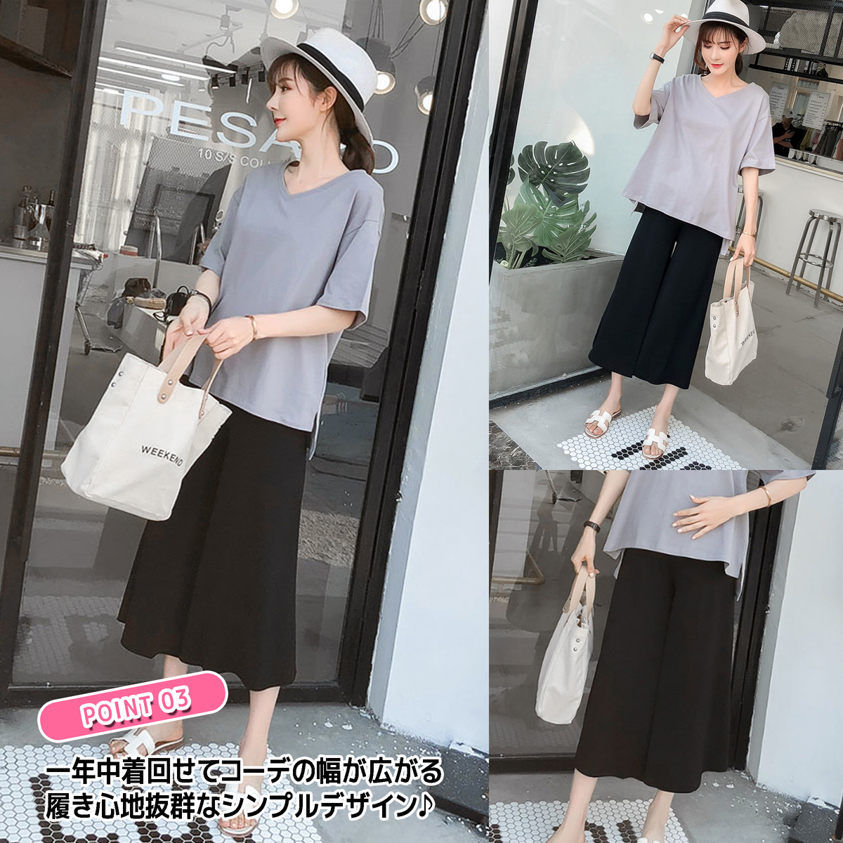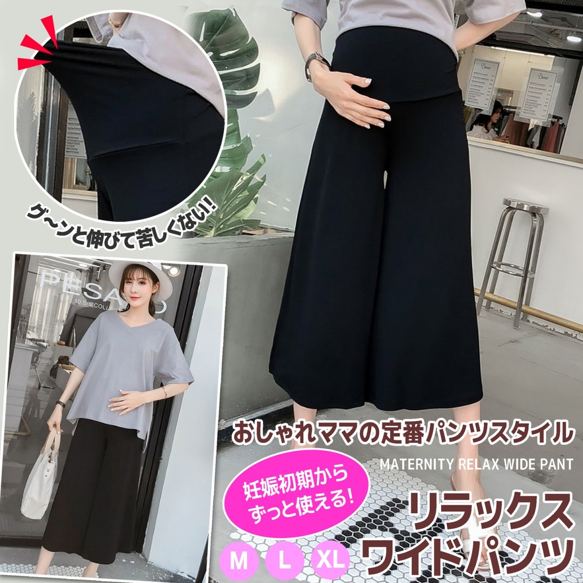 定番ガウチョパンツをマタニティの方にも着て頂きたいと考えております。