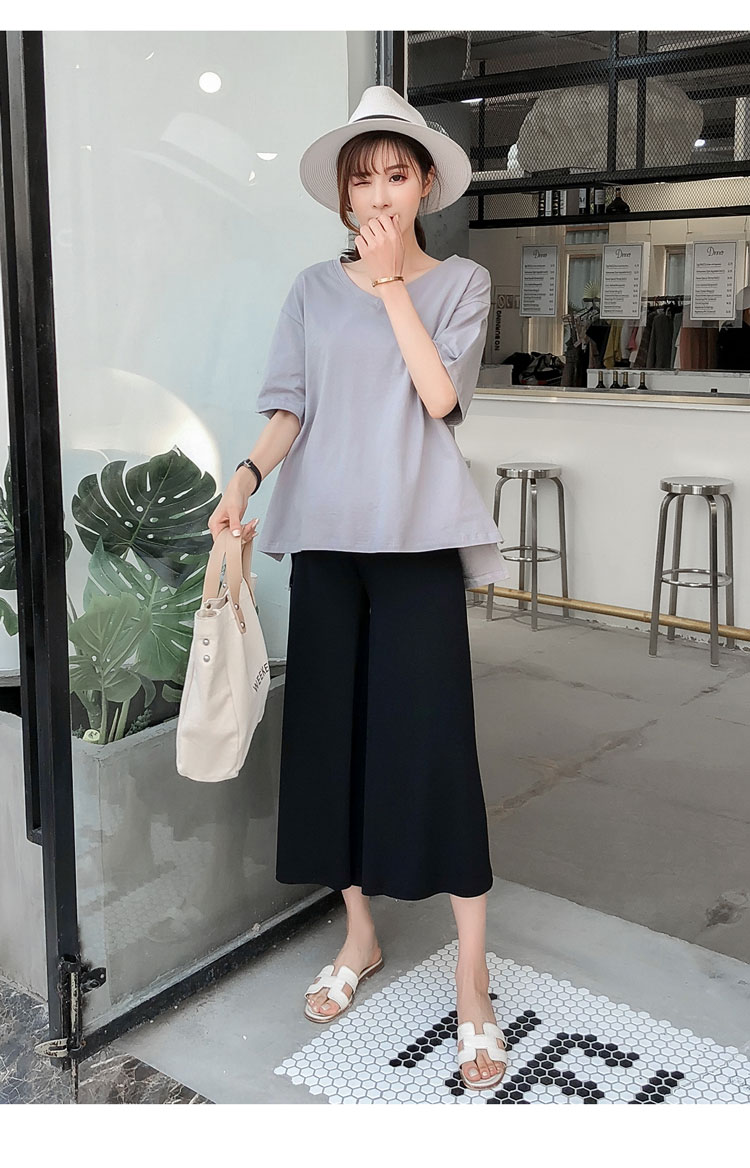 ウエストがゴム入りで楽に履ける マタニティ ワイド ガウチョ パンツ。