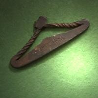 一つはカスガイ形と呼ばれるタイプのもので、木板に鉄の突出した部分を打ちつけた火打金です。
