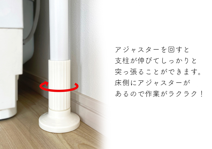 支柱の長さの調整は、金属のボタンを押して中のスライドパイプを伸ばすだけ!支柱の長さの調整がとても簡単です。