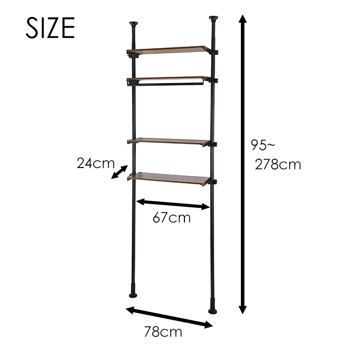 サイズ(約):幅78×奥行24×高さ95cm-278cm