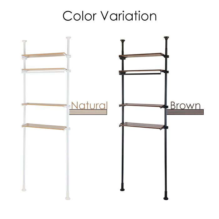 棚板はお好きな高さに無段階で設置する事が出来ます。固定方法も支柱を挟み込む方式なので、支柱にキズがつきません。
