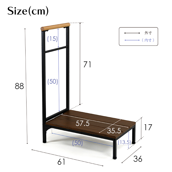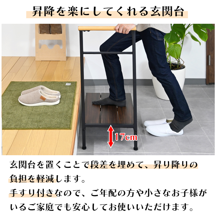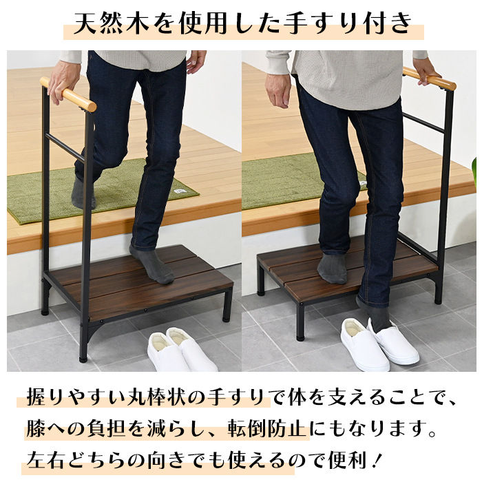 玄関台 玄関踏み台 手すり付き 幅60cm 玄関ステップ 手摺り 転倒防止 段差解消 段差軽減 昇降補助