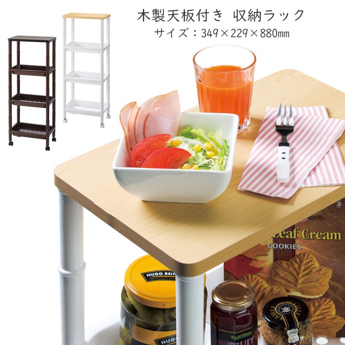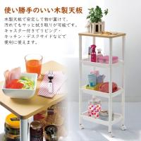 ワゴン キャスター付き 木製天板 テーブルワゴン 4段
