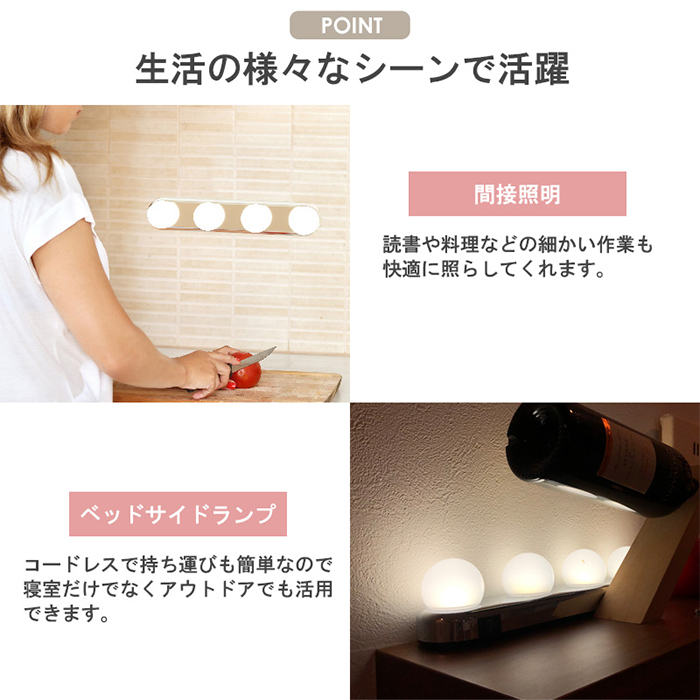事前に充電しておけばコンセントが無い場所でも使えて、オンラインでの会議や間接照明など様々なシーンでご使用いただけます。