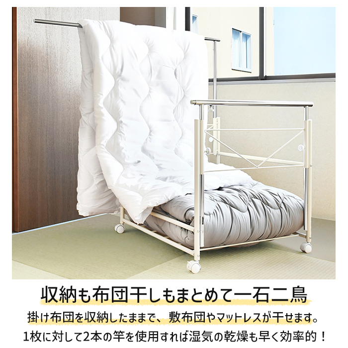 「しまう」「干す」が1台で叶う、伸縮押入れ布団収納ワゴン。