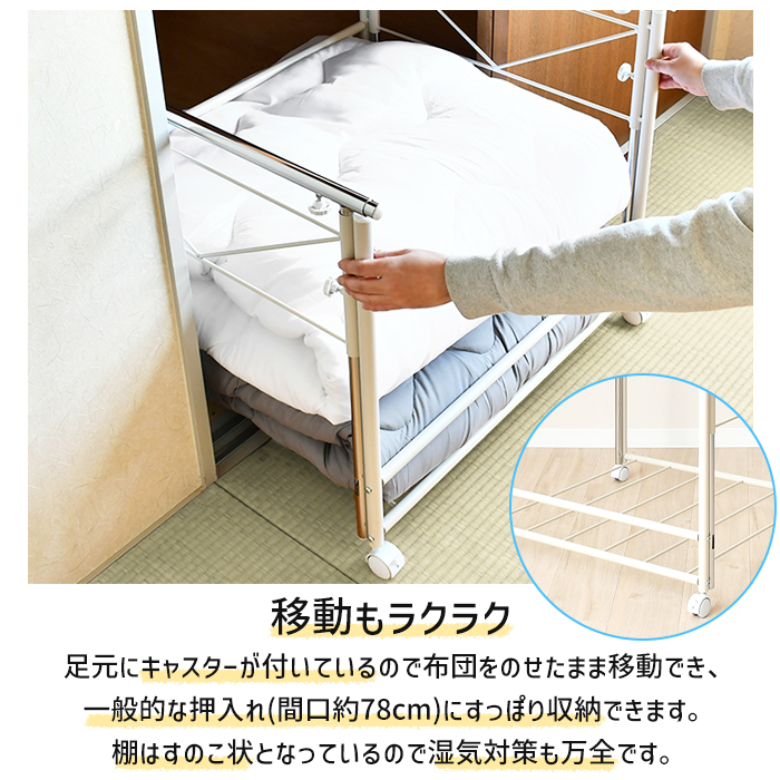 押入れ収納 ラック 伸縮 布団収納ラック 布団干し 押入れワゴン 幅75cm キャスター付き 日本製