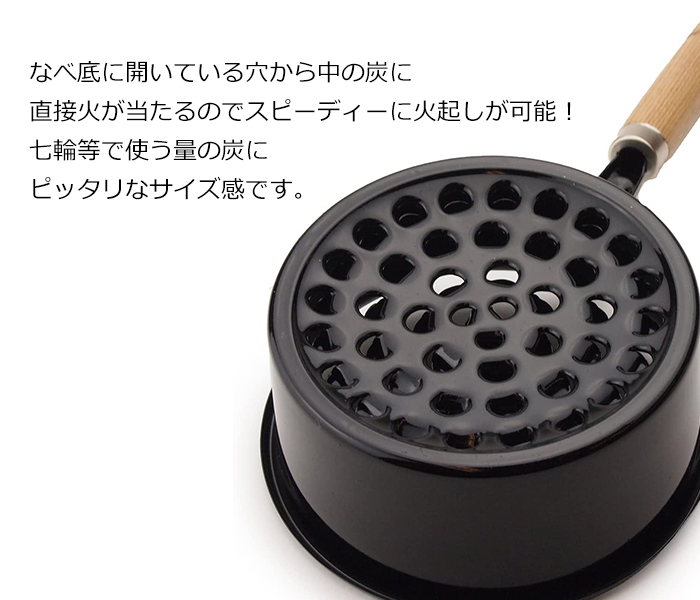 鍋に空いた穴は、火の粉や燃えかすがガステーブルに落ちにくい構造になっています。