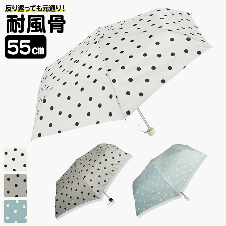 傘 折りたたみ傘 55cm耐風骨 親骨FRP骨 ドット柄 3色