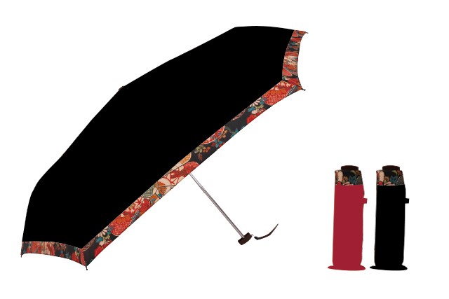 折畳傘 50cmx6本骨 ミニフラット式 19SS古典華柄切継 ポンジ生地 PP手元 ブラックとワインの2色です。 UVカット加工なし(ご注意ください。)