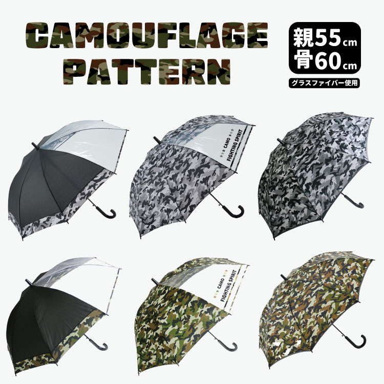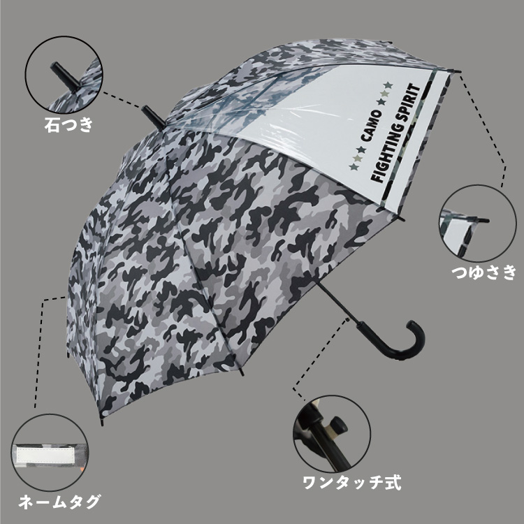子ども傘 ジュニア長傘 55cm ジャンプ式 迷彩柄 FRP骨 2色