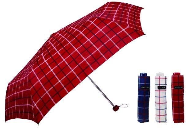 婦人折畳傘 耐風骨 55cm 手開き 9mm 軽量 3段中棒 チェック柄 PP手元