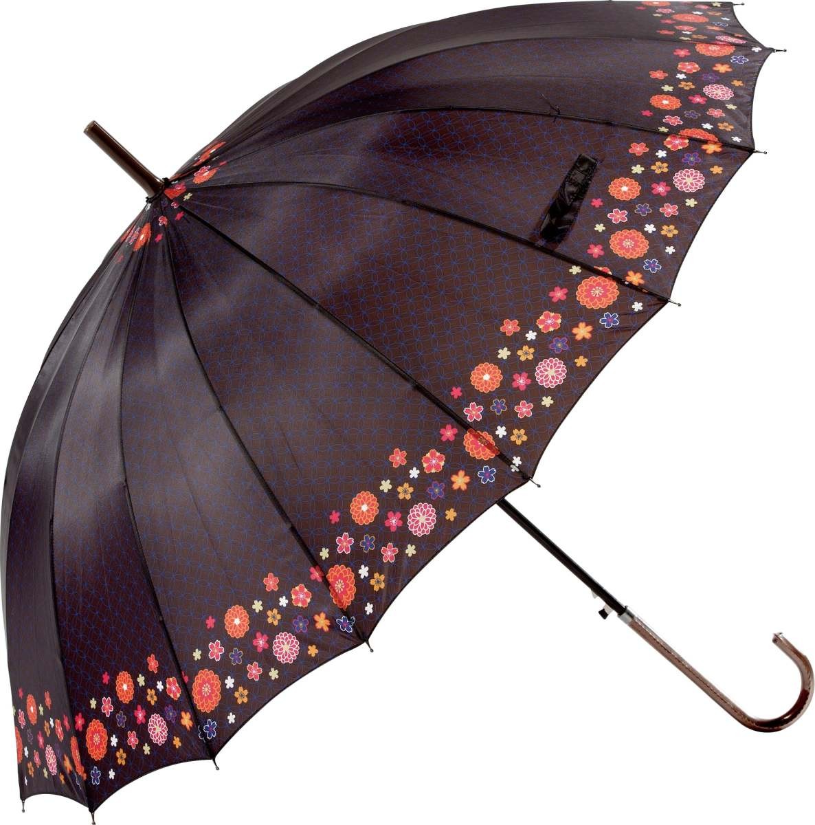 長傘 16本骨 55cm ジャンプ 和柄 渦巻花 UVカット付