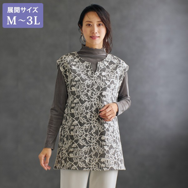 チュニック 大人可愛い おしゃれ 秋冬 ミセス シニア ファッション 40代 50代 60代 70代 総刺しゅうニットソーチュニック