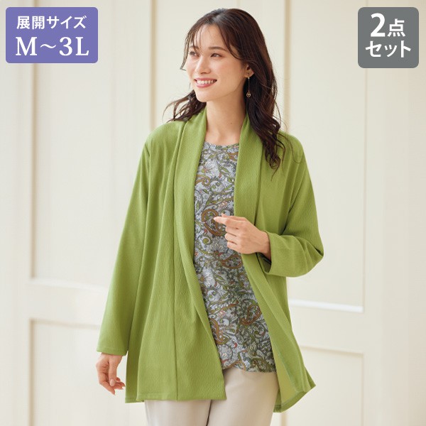 アンサンブル カーディガン レディース おしゃれ 秋冬 ミセス シニア ファッション 40代 50代 60代 70代 プリントジャージーアンサンブル