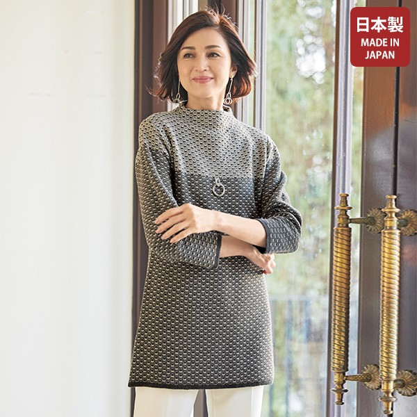 日本製 チュニック 大人可愛い おしゃれ ミセス シニア ファッション 50代 60代 70代 80代 ジャカード切替えニットチュニック 百貨店販売商品◎