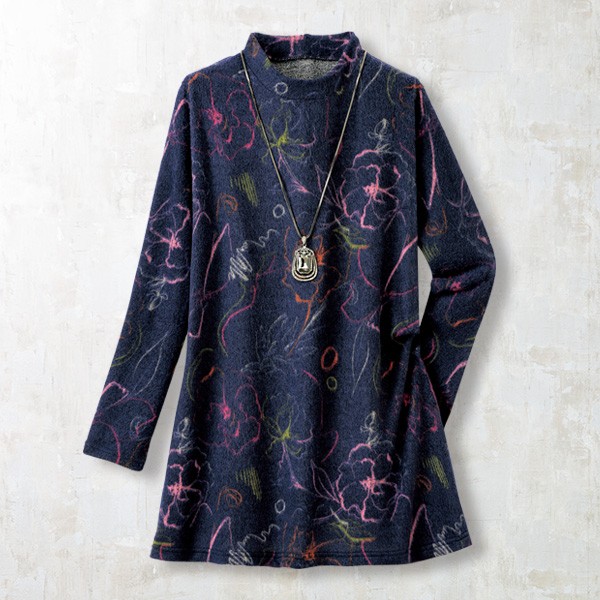 チュニック 大人可愛い おしゃれ ミセス シニア ファッション 50代 60代 70代 80代 秋冬 起毛プリントチュニック