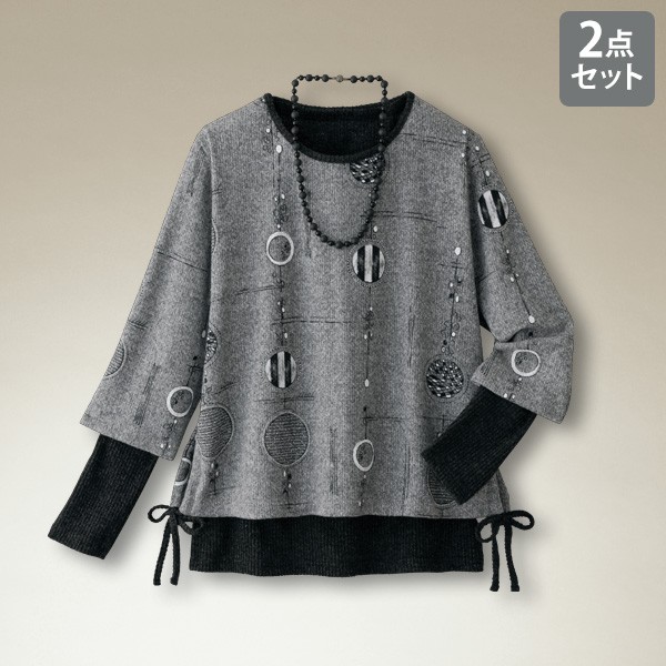 アンサンブル おしゃれ 秋冬 40代 50代 60代 70代 80代 ミセス シニア ファッション 七分袖プリントカットソーアンサンブル